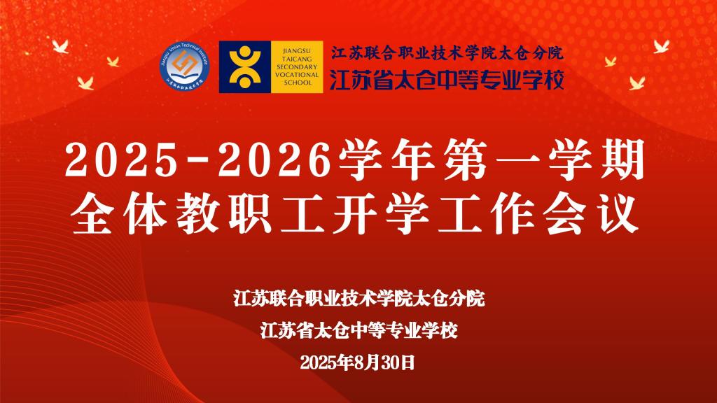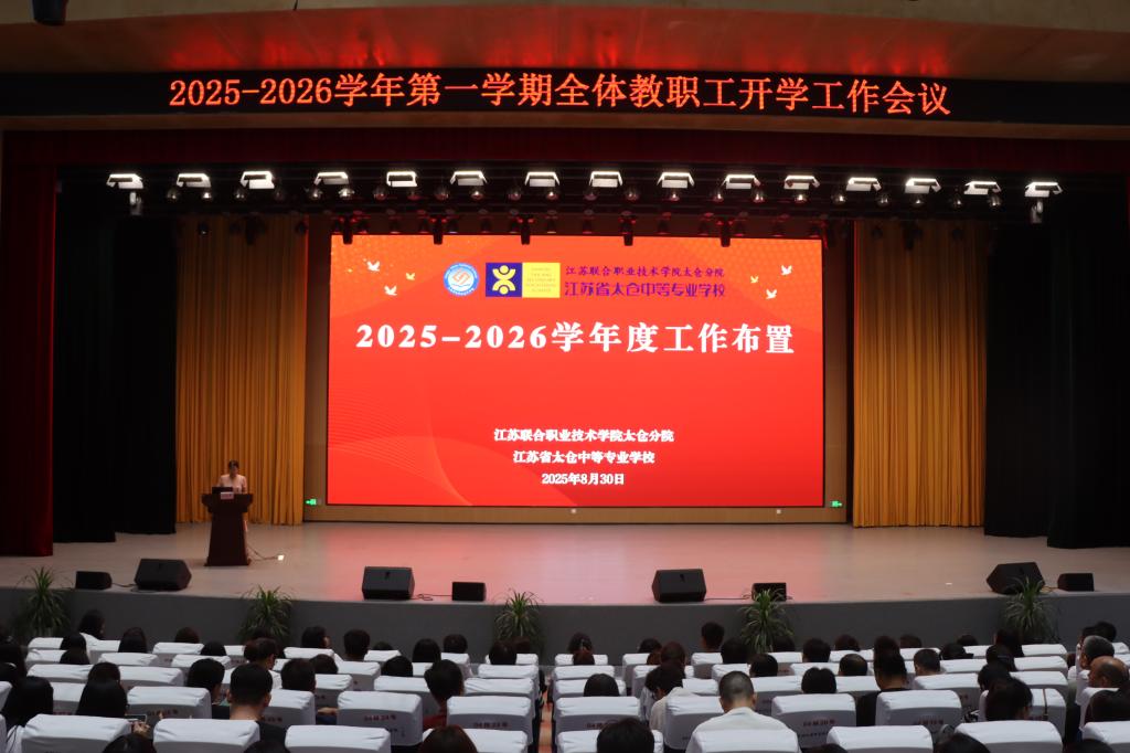 2025年8月30日上午,省太中专(江苏联院太仓分院)2025-2026学年第一学期全体教职工开学工作会议在港城校区报告厅顺利召开,学校校长陆金华等校级领导班子和全体教职工参加了本次会议,会议由校党委书记丁亮主持。