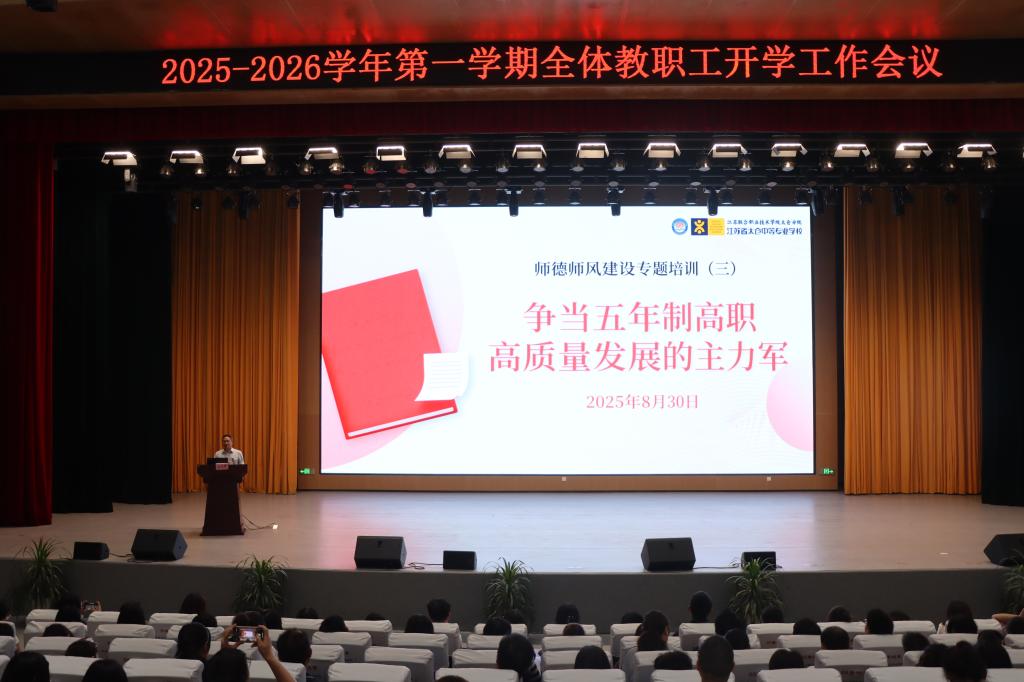 他强调,全体教师要深化职业认知、筑牢理念根基,明细行为边界、严守职业红线,提升育人能力、涵养高尚师德。他号召全体教职员工以教育家精神为引领,凝心聚力、守正创新、攻坚克难,争当五年制高质量发展主力军。