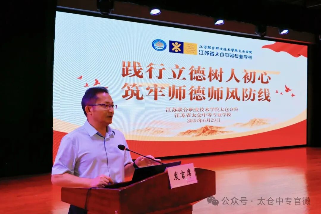 陆金华强调,2025年是“十四五”规划收官冲刺、“十五五”发展蓝图擘画的关键之年。成功升级为江苏联合职业技术学院太仓分院,赋予了我们这一代省太中专人格外光荣且艰巨的时代使命。希望全体教职工将总书记“把职业教育实实在在搞好”的殷切嘱托化为行动,以主人翁姿态,投身教育教学事业,锐意开拓进取,合力攻坚克难,在职业教育现代化建设的壮阔征程中,不负重托、跑好历史的接力棒,奋力谱写无愧于时代、无愧于省太中专荣光的新篇章!